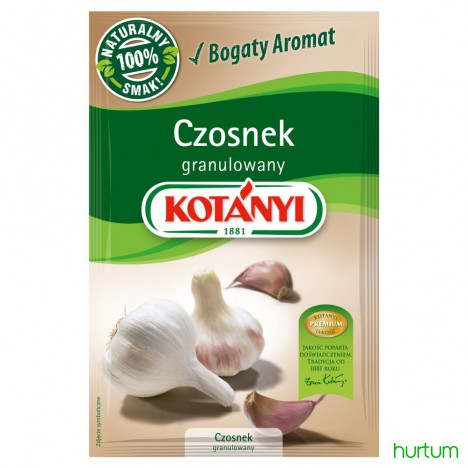 Czosnek charakteryzuje się ostrym, lekko palącym i jednocześnie słodkim smakiem i zapachem. Nie może go zabraknąć w specjalnościach kuchni śródziemnomorskiej i azjatyckiej. Czosnek Kotányi dodany do potrawy nadaje jej taki sam aromat jak świeżo wyciśnięty.