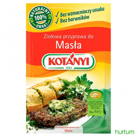 Znakomicie dobrane zioła i przyprawy do wspaniałego masła ziołowego. Przyprawę wystarczy wymieszać z masłem, owinąć nasączonym papierem śniadaniowym i schłodzić. Idealne do świeżego pieczywa, zapiekanek, steków i wielu innych potraw.