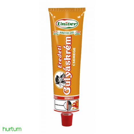 Wyjątkowość Pasty Gulaszowej kryje się w papryce, cebuli, pomidorach, kminku i mieszance przypraw. Przyprawia się nią zupę gulaszową, sosy, zapiekanki i sałatki. Temperatura przechowywania: pomiędzy 0-(+20) °C Skład: Mielona papryka łagodna, sól, czerwona cebula, koncentrat pomidorowy, olej roślinny, woda, regulator smaku, cukier, przyprawy, listek laurowy, modyfikowana skrobia kukurydziana, substancja zagęszczająca (ksantan), kwasek cytrynowy, środek konserwujący.Przydatność do spożycia: na opakowaniu Opakowanie: 160 g (tubka) Wartość odżywcza W 100 g produktu Kaloryczność 494 kJ (118 kcal) Białko 2,1 g Węglowodany 5,5 g Tłuszcze 9,5 g Zawiera seler i sulfidy (bezglutenowy).
