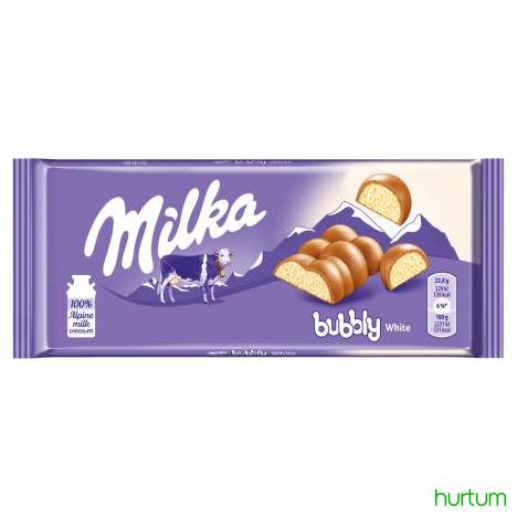 Czekolada mleczna z mleka alpejskiego z napowietrzoną białą czekoladą (46%).
