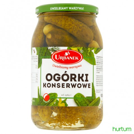 Skład: ogórki, woda, ocet spirytusowy, cukier, sól, koper, mieszanka przypraw (zawiera gorczycę)