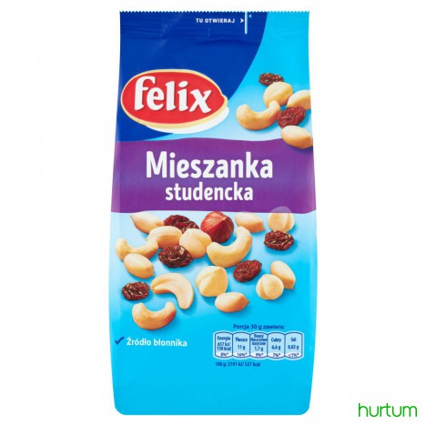 Dobrze dobrana proporcja najlepszych gatunkowo orzechów oraz słodkich rodzynek sprawdzi się jako przekąska, szybka odpowiedź na nagły głód, a także zaspokoi chęć chrupania.