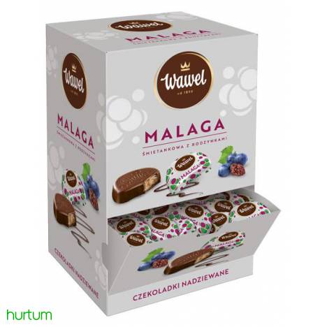 Czekoladka Malaga to smak uwielbiany od pokoleń. Delikatne śmietankowe nadzienie pełne kawałków słodkich rodzynek, zatopione w doskonałej deserowej czekoladzie.