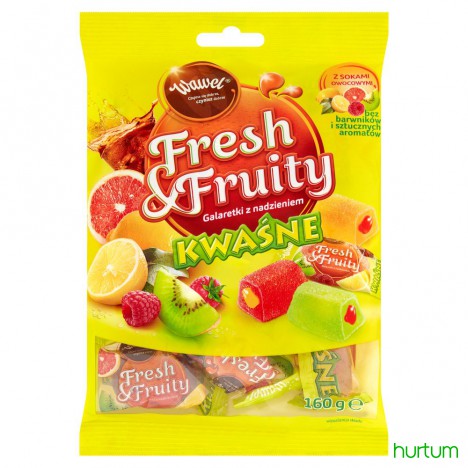 Kwaśne galaretki z serii Fresh & Fruity to idealna propozycja dla wielbicieli oryginalnych i niepowtarzalnych smaków. Nową serię tworzą galaretki w czterech kwaśnych smakach: cola i grejpfrut z nadzieniem cytrynowym oraz kiwi i cytryna z nadzieniem malinowym.