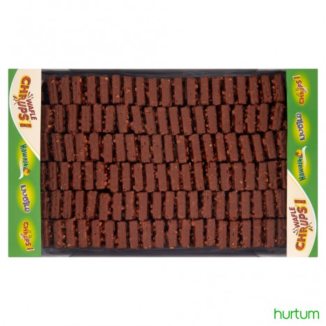 Wafle z kremem orzechowym w polewie czekoladowej mlecznej.