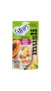 | 78,6% musli crunchy [płatki owsiane pełnoziarniste, cukier, kulki pszenne (mąka pszenna, mąka kukurydziana, otręby pszenne, cukier, sól), olej rzepakowy, wiórki kokosowe, mąka żytnia, 1,7% nasiona chia (nasiona szałwii hiszpańskiej Salvia hispanica), sól, aromat, emulgator: lecytyny (z soi)] |