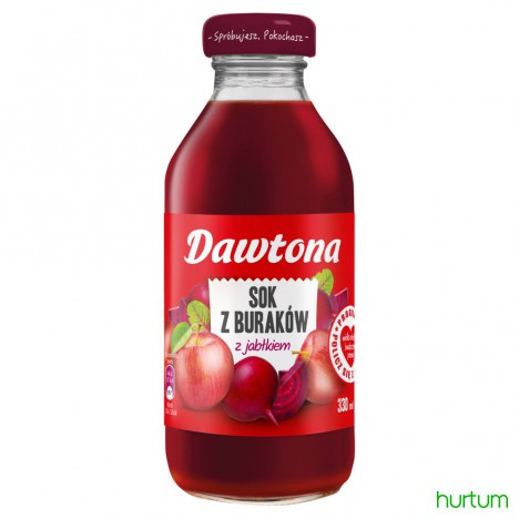 Sok z Buraków z Jabłkiem Dawtona to doskonały pomysł dla wszystkich zapracowanych. Będzie idealny w menu tych, którzy potrzebują wzmocnienia i dodatkowej dawki energii. Ze względu na swoje prozdrowotne właściwości burak jest niezwykle cenionym warzywem. Wzbogacony sokiem z soczystych, polskich jabłek oraz przecierem m.in. z selera i imbiru nabiera wyrazu i lekkości. Czas na przerwę!