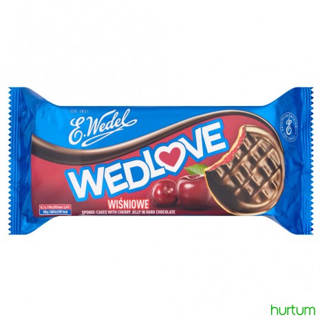 Biszkopty z galaretką wiśniową (52%) oblane czekoladą deserową