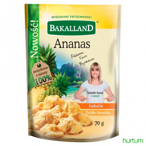 Sięgnij po ananasa prosto z plantacji w egzotycznej słonecznej Tajlandii. Całe plastry tego pysznego owcu poddane zostały delikatnemu suszeniu dla zachowania maksymalnej soczystości, aromatu i smaku.