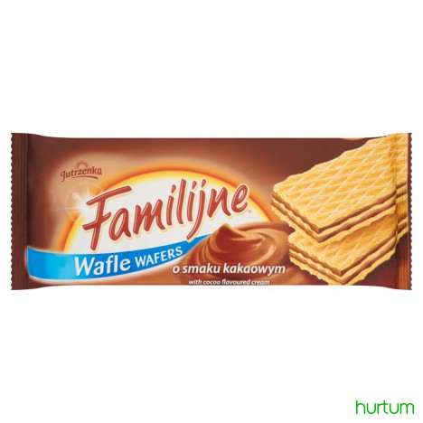 Wafle przekładane kremem o smaku kakaowym.