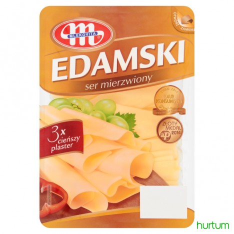 Edamski ser dojrzewający, mierzwiony, plastry.