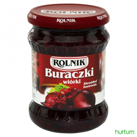 Buraki ćwikłowe marynowane, wiórki. Produkt pasteryzowany.