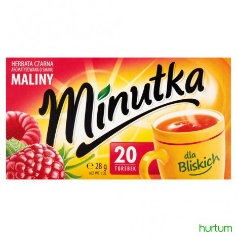 Minutka Herbata czarna aromatyzowana o smaku maliny 28 g (20 torebek)