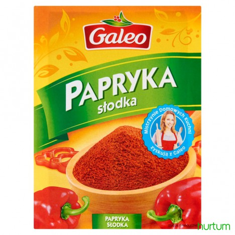 Papryka słodka Galeo ma aromatyczny, owocowy zapach oraz słodki smak. Wzbogaca smakowo dania z mięsa, drobiu i ryb. Polecana do przyprawiania zup, warzyw, sałatek i serów. Doskonale barwi sosy oraz potrawy z jaj, ryżu i drobiu.