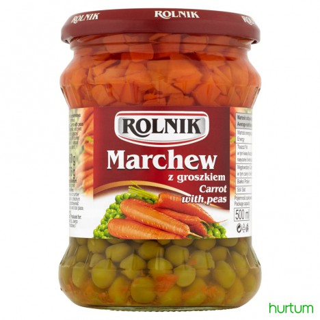 Mieszanka warzywna konserwowa groszku zielonego z marchwią. Produkt sterylizowany.