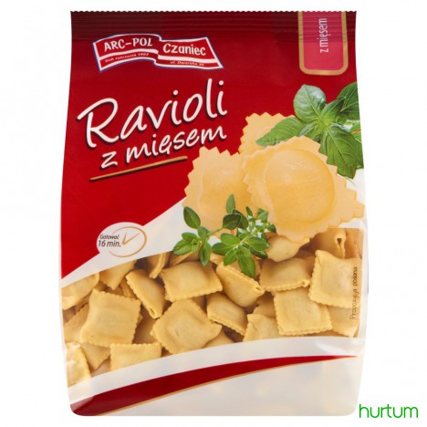 Ravioli z mięsem. Makaron jajeczny z nadzieniem mięsnym.