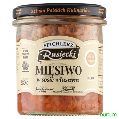 Konserwa wieprzowa, grubo rozdrobniona, sterylizowana.