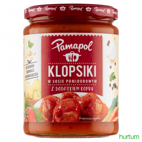 Klopsiki z mięsa oddzielonego mechanicznie z kurczaka i mięsa wieprzowego w sosie pomidorowym z warzywami. Produkt sterylizowany.