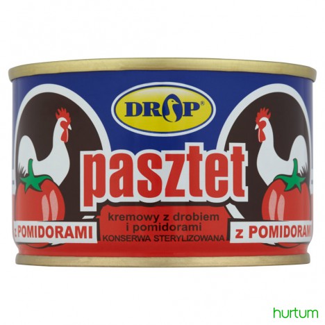 Pasztet kremowy z drobiem i pomidorami. Konserwa sterylizowana.