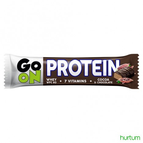Proteinowy baton kakaowy w czekoladzie deserowej, wzbogacony witaminami.