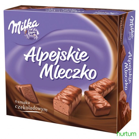 Niezwykle delikatna pianka z alpejskiego mleka oblana najdelikatniejszą w smaku czekoladą Milka.