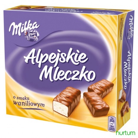 Niezwykle delikatna pianka z alpejskiego mleka oblana najdelikatniejszą w smaku czekoladą Milka.