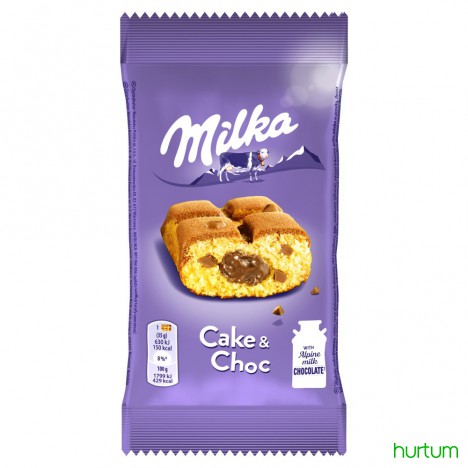 Ciastko biszkoptowe z kawałkami czekolady mlecznej z mleka alpejskiego (10 %) i nadzieniem (14 %) z czekoladą (2,5 %).