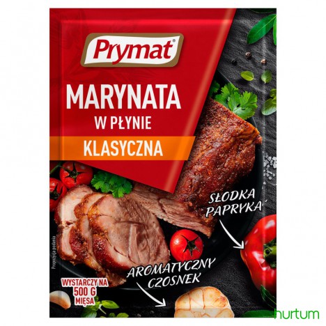 1. Przed otwarciem wstrząsnąć, tak aby wszystkie składniki marynaty dobrze się wymieszały. Odciąć brzeg opakowania, a następnie przygotowane i umyte mięso natrzeć marynatą z każdej strony.