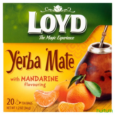 Yerba Mate to wysuszone i zmielone liście paragwajskiego ostrokrzewu, z których przygotowuje się napar, szczególnie doceniony w krajach Ameryki Południowej i na Bliskim Wschodzie. Nazwę tego wyjątkowego naparu wymyślili jezuici - liście ostrokrzewu nazwali "herba" - ziele; z kolei tykwa, w której go parzono w plemieniu Keczua została nazwana „mati" - co dało nam współczesne Yerba Mate. Loyd Yerba Mate pakowane jest dla wygody w torebki w kształcie piramidek, które zapewniają całym listkom herbaty wystarczająco dużo miejsca, aby w pełni mogły się rozwinąć i zagwarantować wysublimowany zapach i szlachetny, wyrafinowany smak naparu. Teraz i Ty możesz sprawdzić, jak wspaniale smakuje i orzeźwia Yerba Mate, a dodatek egzotycznej mandarynki to idealne dopełnienie tego wytwornego smaku.