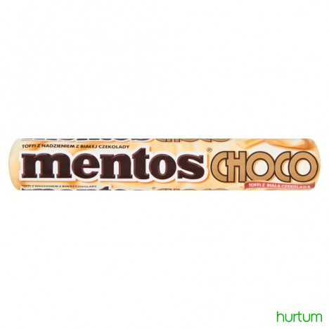 Toffi o smaku karmelowym z nadzieniem z białej czekolady.