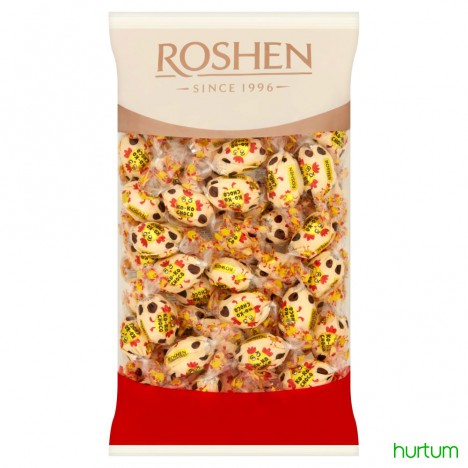 Cukierki wypełnione kremami o smakach: śmietankowym i waniliowym w białej polewie (45%).