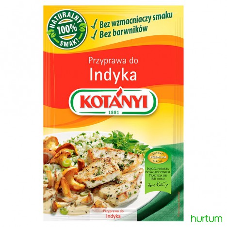 Starannie wyselekcjonowane składniki Przyprawy do Indyka Kotányi zapewniają wyjątkowy i bardzo aromatyczny smak potrawy. Kompozycja ta niezastąpiona jest do wszelkich dań z indyka.