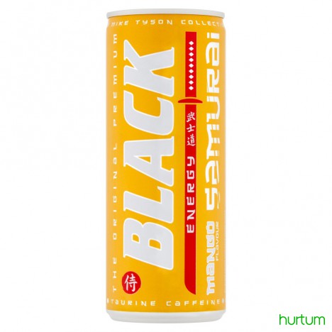 Gazowany napój energetyzujący o smaku mango z dodatkiem witamin (niacyna, kwas pantotenowy, witamina B6, witamina B12).