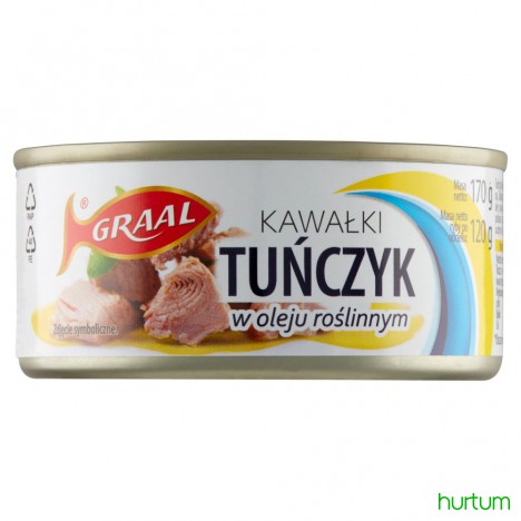 Tuńczyk kawałki w oleju roślinnym. Konserwa rybna sterylizowana.