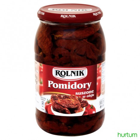 Pomidory suszone w oleju Rolnik to wyśmienita przekąska oraz przepyszny, słodko-kwaśny dodatek do rozmaitych potraw, sałatek, kanapek i pizzy, którym nadaje ziołowo-czosnkowego aromatu. Dzięki tradycyjnej marynacie na bazie octu winnego i oleju roślinnego, pomidory są idealnie miękkie i soczyste.