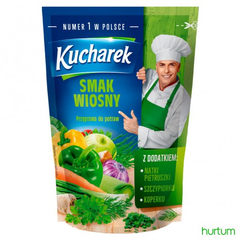 Aby poczuć wiosenny powiew w swojej kuchni sięgnij po Kucharka Smak Wiosny. Wyjątkowa kompozycja warzyw została wzbogacona o natkę pietruszki, szczypiorek i koperek. Nada ona Twoim zupom, sałatkom i potrawom mięsnym lekkości i subtelnego zapachu. Zaskocz swoich najbliższych przepysznym daniem przygotowanym z Kucharkiem Smak Wiosny!