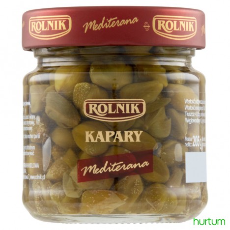 Kapary Rolnik to wykwintna, śródziemnomorska przekąska oraz wyrazisty dodatek do dań rybnych, mięs, owoców morza, sałatek, makaronów, pizzy i sosów. Wyśmienicie smakują także jako samodzielna przekąska, podawana do serów i czerwonego wina. Kapary zanurzono w lekkiej zalewie na bazie aromatycznego octu winnego, dzięki której zyskały idealną kruchość, kwaskowatość i soczystość.