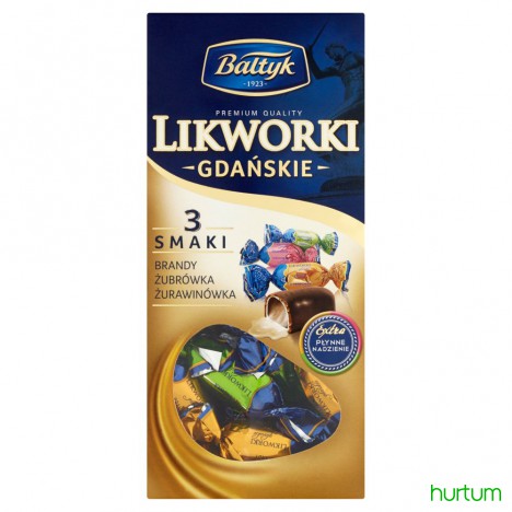 Likworki o smakach „Brandy", „Żubrówka", „Żurawinówka" w czekoladzie (25%).