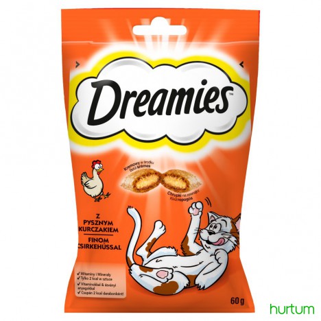 Przepysznie chrupkie na zewnątrz, kremowe w środku. Koty nie będą mogły się oprzeć wspaniałemu smakowi Dreamies.