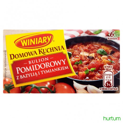 Bulion pomidorowy z bazylią i tymiankiem idealnie podkreśli smak Twoich sosów, zup i potraw na bazie pomidorów. Dodaj go do leczo, sosu do gołąbków lub dań mięsno-warzywnych.
