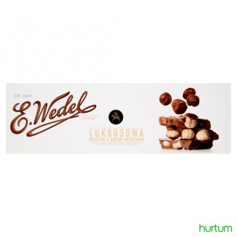 Luksusowa od Wedla to doskonały smak uzyskany dzięki połączeniu masy czekoladowej z wyselekcjonowanymi całymi orzechami. Idealna dla tych, którzy pragną delektować się niezwykle orzechową czekoladą.