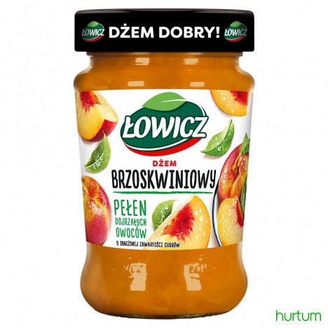 Dżem brzoskwiniowy o obniżonej zawartości cukrów.* Pasteryzowany.