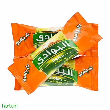 Składniki: Czysta pasta sezamowa, sacharoza, syrop glukozowy, syrop fruktozowy, kwas cytrynowy (E330), wyciąg z korzenia Saponaria, aromaty (wanilina), emulgator lecytyna (E322)