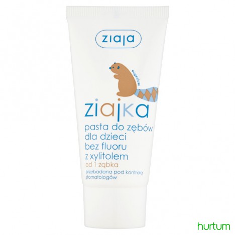 Ziaja Ziajka Pasta do zębów z xylitolem od 1 ząbka przebadana pod kontrolą stomatologów Pasta dla dzieci do stosowania od pierwszego ząbka. Bez cukru, konserwantów i sztucznych barwników.
