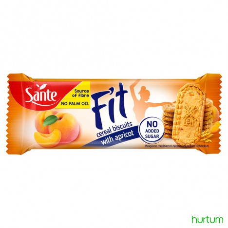 Ciastka zbożowe z morelą. Bez dodatku cukrów. Produkt zawiera naturalnie występujące cukry.