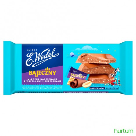 Czekolada mleczna z nadzieniem orzechowym z wafelkami i kawałkami orzeszków arachidowych