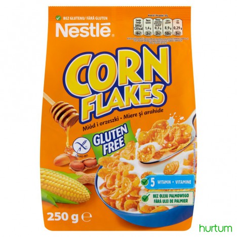 Chrupiące płatki kukurydziane z miodem i orzeszkami ziemnymi, z witaminami.