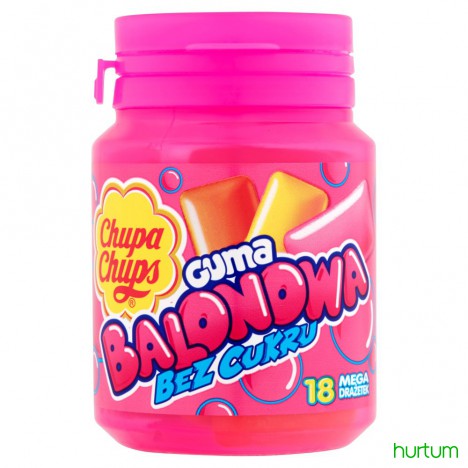 Guma balonowa o smaku truskawkowym, pomarańczowym i cytrynowym bez cukru (zawiera substancje słodzące).