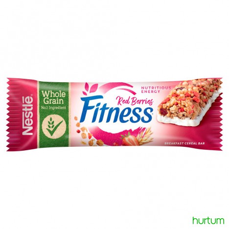 Płatki śniadaniowe w formie batonika z żurawinami i truskawkami, z witaminami i składnikami mineralnymi.