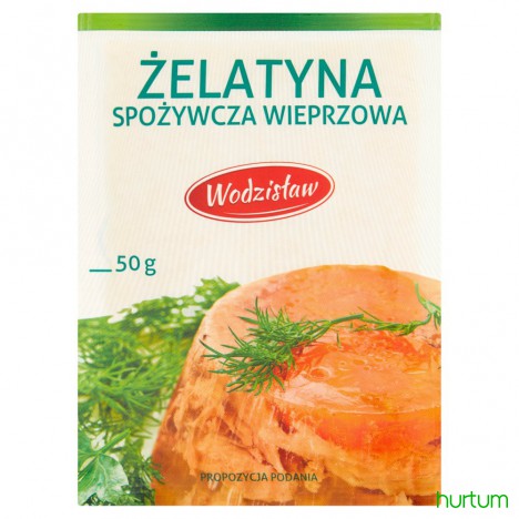 Żelatyna spożywcza zwykła wieprzowa do rozpuszczenia we wrzącej wodzie lub wywarze (bez gotowania). Żelatynę możesz wykorzystać rownież do ciast i deserów. Jest wyjątkowo klarowna, dobrze się rozpuszcza, osiągając idealną konsystencję w daniach warzywnych, mięsnych i rybnych. Zdatna do spożycia przez ludzi. Produkt może zawierać gluten, mleko i soję. Kraj pochodzenia: 1. Kraje UE, 2. Chiny, 3. Szwajcaria - numer kraju pochodzenia podano obok daty minimalnej trwałości. Przechowywać w suchym i chłodnym miejscu. Stosowanie: rozpuścić 3 pełne łyżeczki żelatyny (ok. 10 g) w 0,5 litra wrzącej wody lub wywaru (nie gotuj). Zawartość opakowania wystarcza na 2,5 litr płynu.